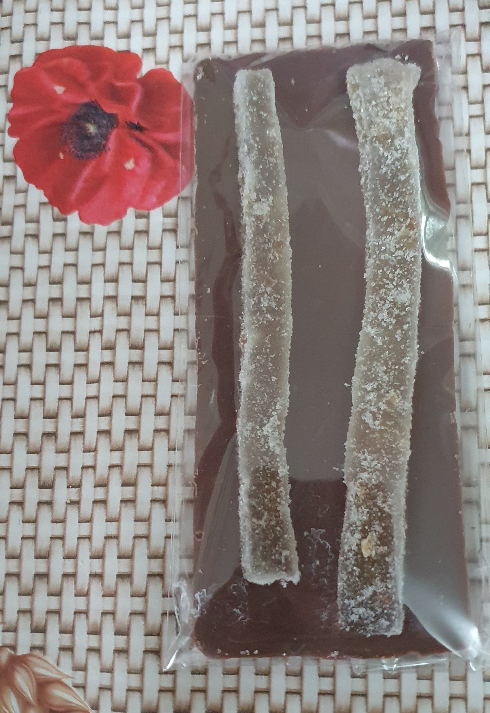 Indulge in the holiday spirit with our Orangette Chocolate bar! Crafted with our signature Belgian Chocolate, it's topped with two luscious candied Orange peel strips for a festive touch. Treat yourself or a loved one to this 40g bar that's perfect for the season.